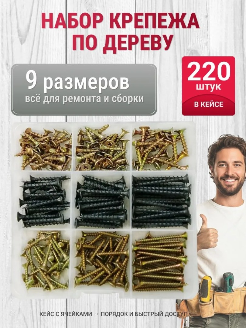 Набор саморезов по дереву - 220 шт